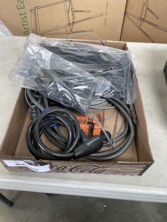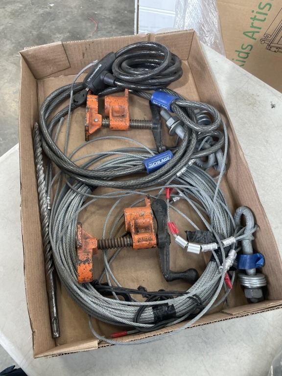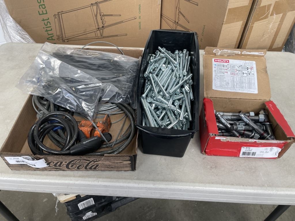 Lot 102 LOT OF CABEL LOCKS, CLAMPS, ZIPTIES, ETC, AND BIN OF BOLTS