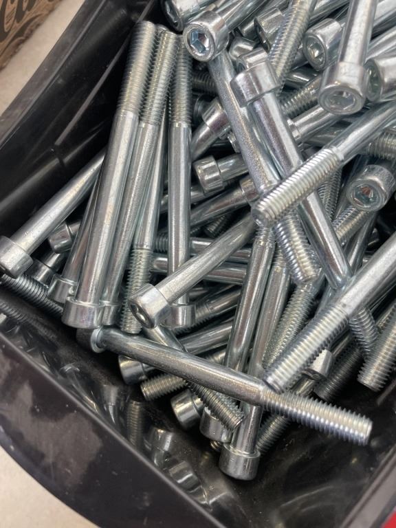 LOT OF CABEL LOCKS, CLAMPS, ZIPTIES, ETC, AND BIN OF BOLTS
