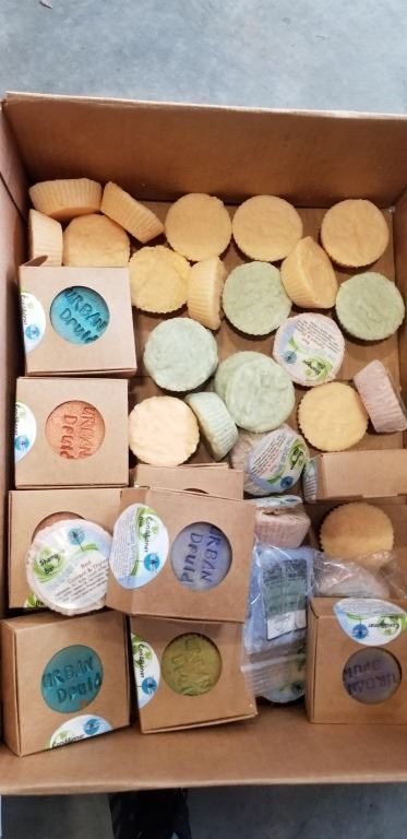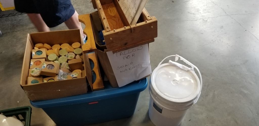 SOAP MAKING SUPPLIES - SOA FORMS, TALLOW AND BUCKET OF COCONUT OIL, SAMPLES