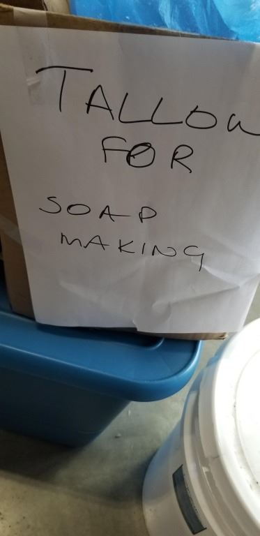 Lot 195 SOAP MAKING SUPPLIES - SOA FORMS, TALLOW AND BUCKET OF COCONUT OIL, SAMPLES