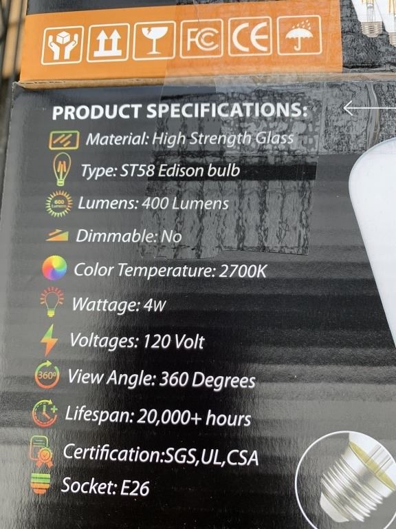Lot 211 EIGHT BOXES OF BERELLI ST58 4W 2700K E26 STANDARD SOCKET LIGHT BULBS SIX PER BOX RETAIL $200