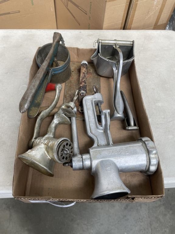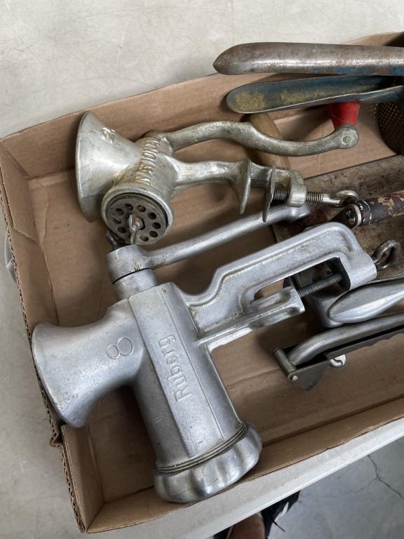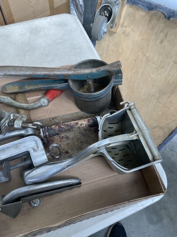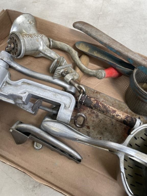 Lot 220 TRAY OF ASSORTED VINTAGE GRINDERS AND PRESSES