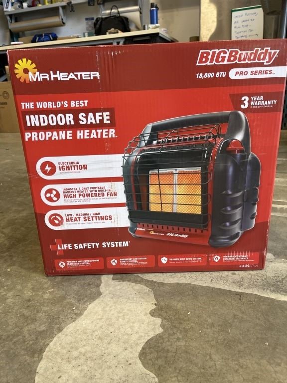 Lot 258 NEW MR HEATER BIG BUDDY 18K BTU PRO SERIES INDOOR SAFE PROPANE HEATER