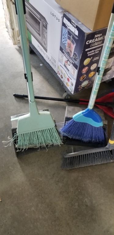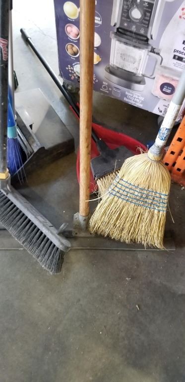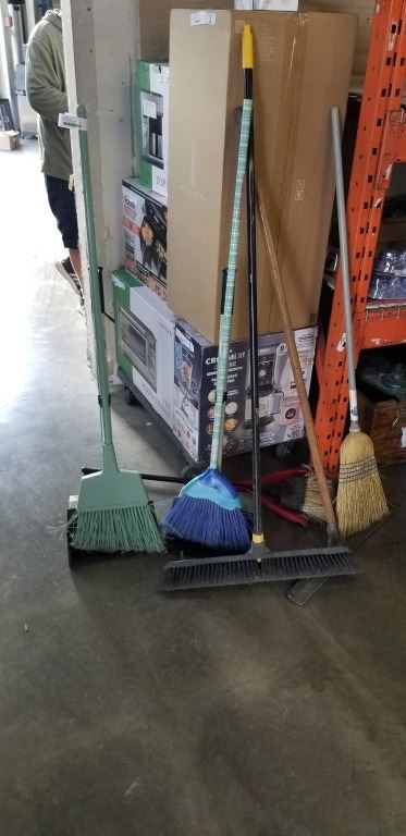 Lot 314 ASSORTED BROOMS, SQUEEGIE, AND LOBBY DUST PANS