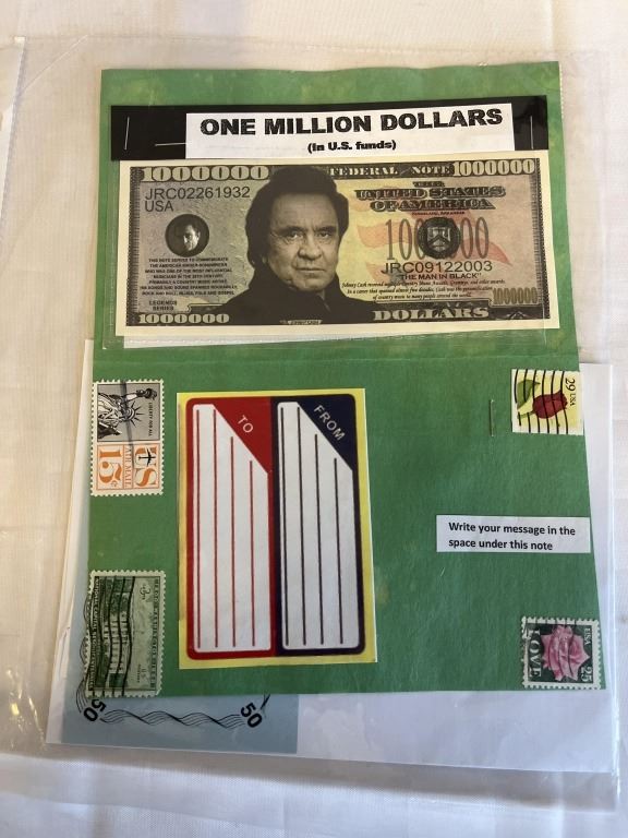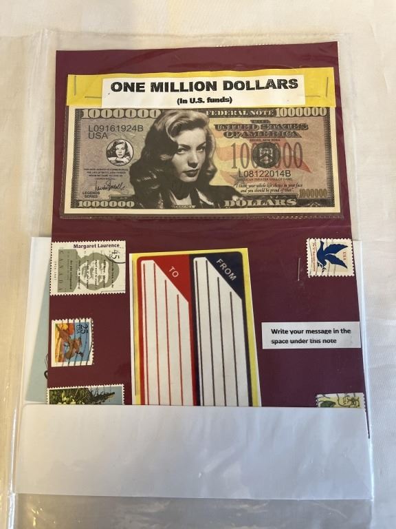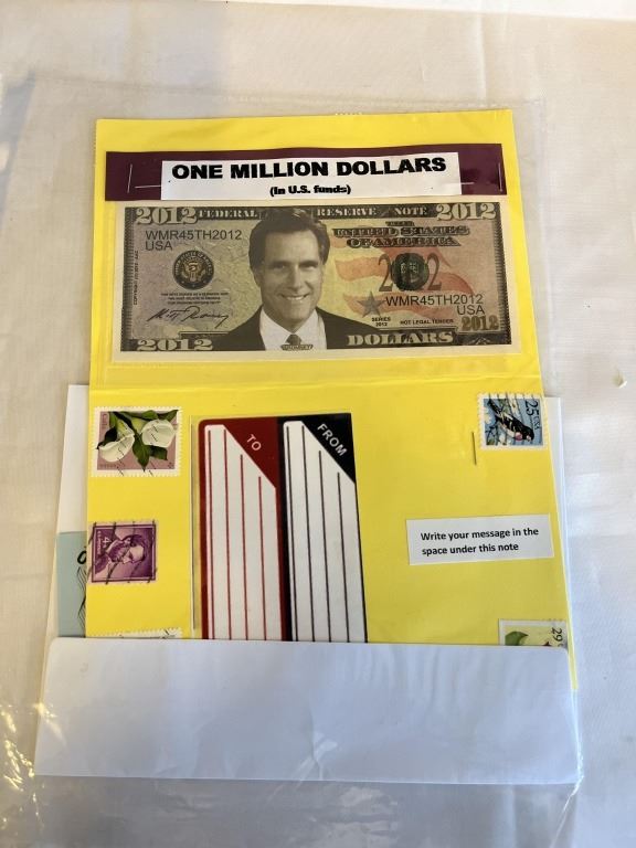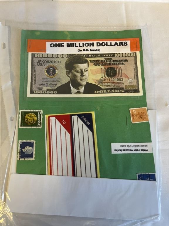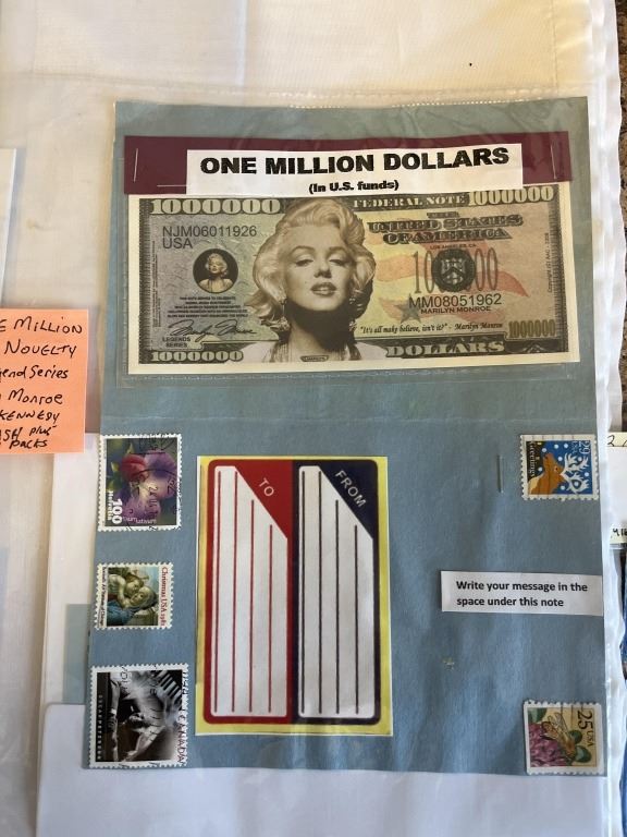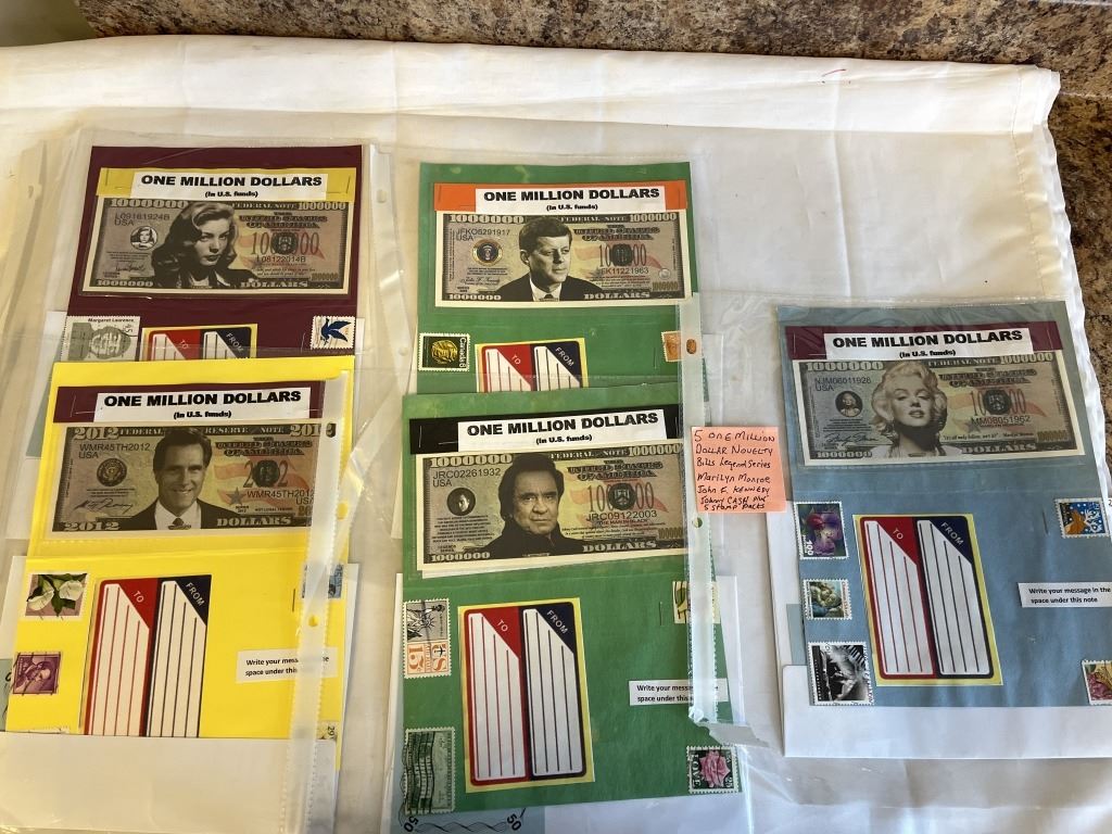 Lot 416 5 - 1 MILLION DOLLAR USA SEPCIAL NOVELTY BILLS PLUS 5 PACKS OF STAMPS