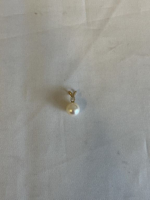 14K GOLD PENDANT W/ CULTURED PEARL AND DIAMOND (TESTED)