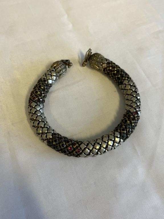 Lot 456 VINTAGE SILVER W/ STONES BANGLE BRACELET