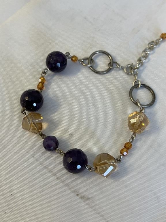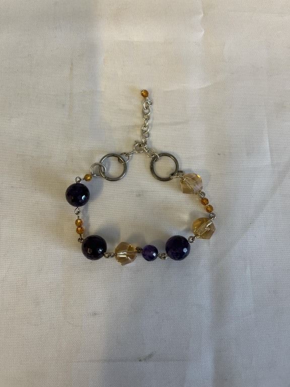 Lot 459 SILVER W/ AMETHYST AND CIRTRINE FACETED BEADS BRACELET