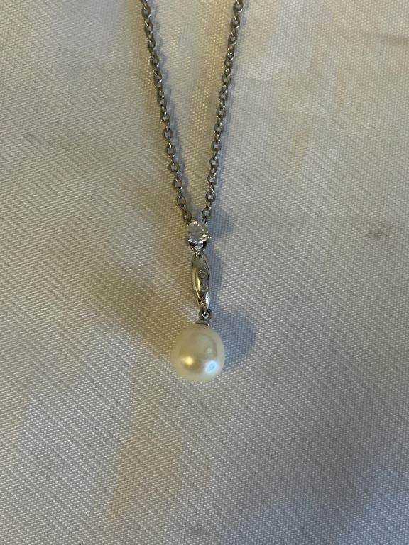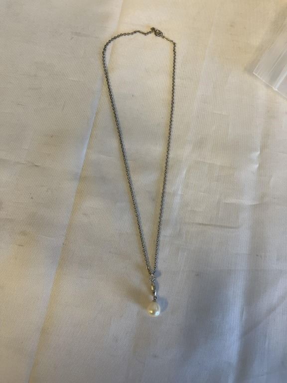 Lot 468 SILVER CHAIN W/ GENUINE PEARL PENDANT NECKLACE