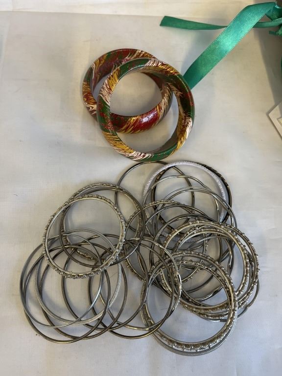 Lot 479 BAG OF BANGLES AND CASE OF INDIAN FASHION JEWELRY POSSIBLY GOLD PLATED