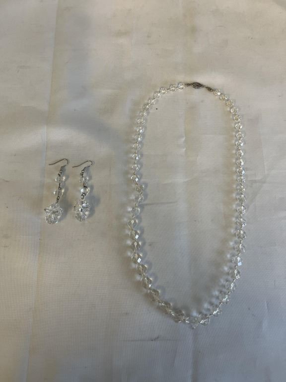 AUSTRIAN CRYSTAL BEADS NECKLACE AND PAIR OF EARRINGS SET