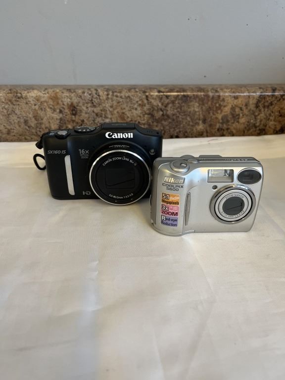 CANON SX160 IS POWERSHOT AND NIKON COOLPIX 5600 CAMERAS, BOTH WORKING