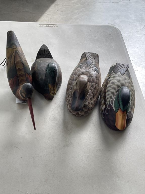Lot 514 3 VINTAGE WOODEN DECOYS AND BIRD FIGURE