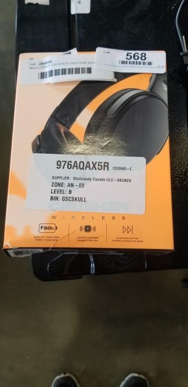 Lot 568 SKULLCANDY CRUSHER OVER EAR SOUND ISOLATING WIRELESS HEADPHONES W/ MIC - TESTED WORKING, RETAIL $149