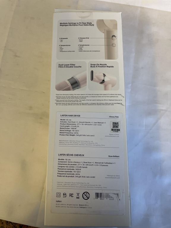 Lot 586 NEW LAIFEN SWIFT SE LITE PINK 1400W HAIR DRYER - TESTED WORKING, RETAIL $109