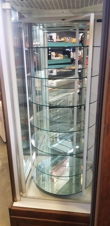 TEKNA LINE REVOLVING GLASS REFIRGERATED DISPLAY COOLER, 7 REVOLVING GLASS SHELVES, 4 SIDED GLASS PANELS WITH DIGITAL TEMP DISPLAY, TESTEDWORKING, IN GOOD CONDITION
