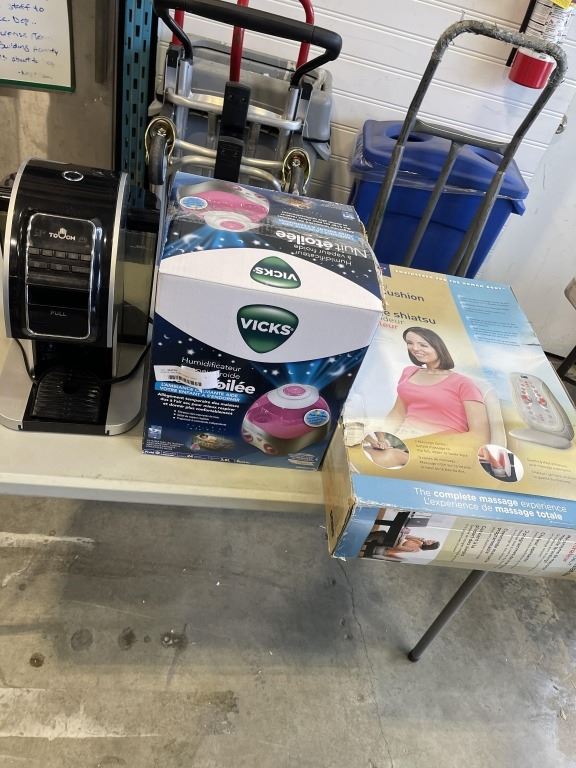 Lot 718 SHIATSU BACK MASSAGER, VICKS HUMIDIFER, AND COFFEE MAKER