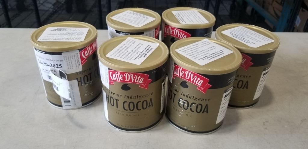 Lot 747 6 CAFFE D'VITA HOT COCOA MIX (453 G EACH) BB - 2025
