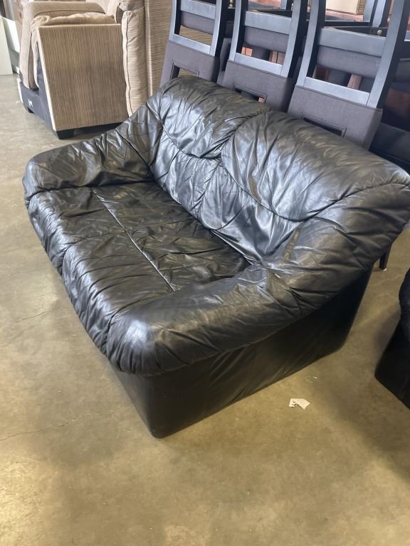 BLACK LEATHER LOVE SEAT AND CHAIR