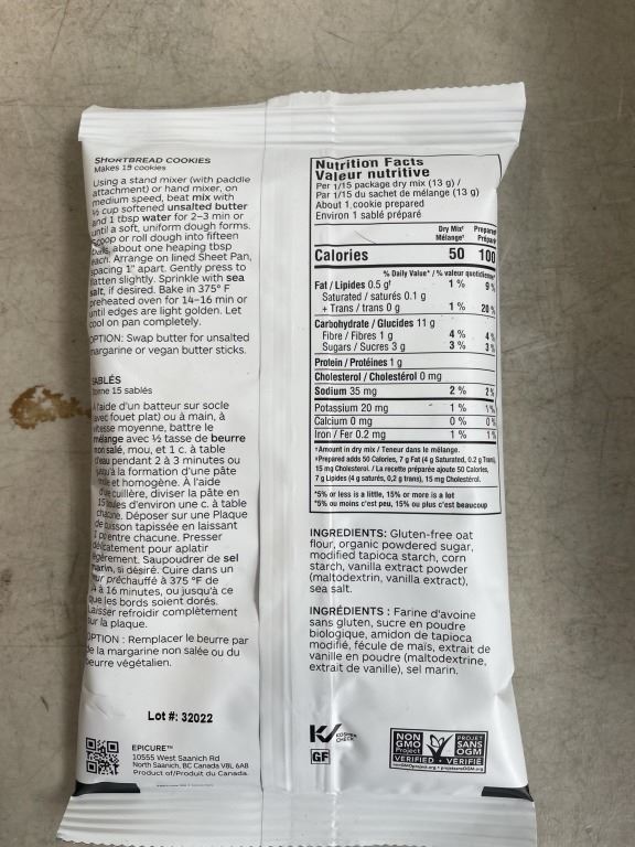 BOX OF SEALED EPICURE SHORT BREAD COOKIE MIX PACKETS