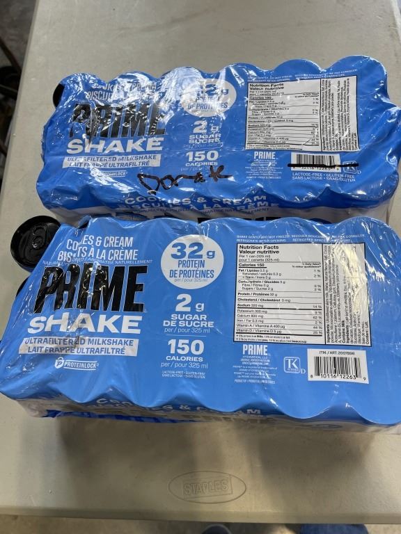 Lot 845 2 CASES OF PRIME COOKIES AND CREAM PROTEIN DRINK EXP 2027