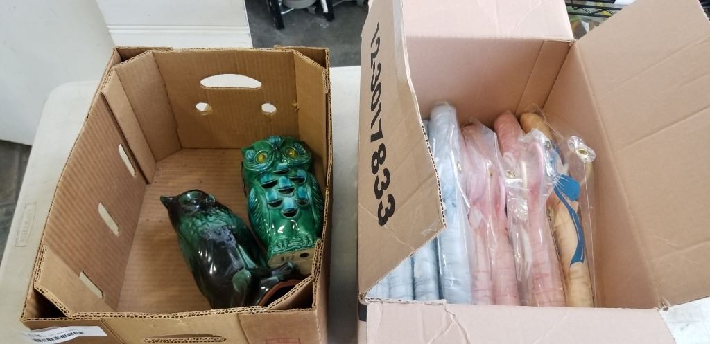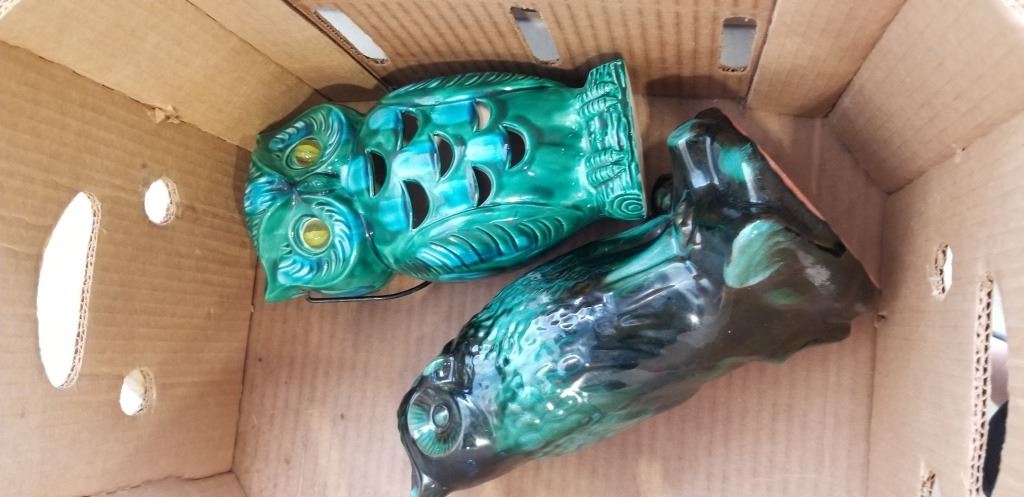 2 VINTAGE OWLS, GIFTCRAFT AND ASSORTED VINTAGE KIDS PADDED HANGERS