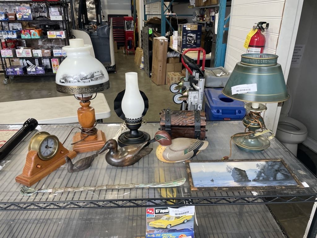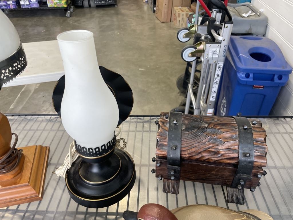 Lot 1039 ASSORTED VINTAGE AND ANTIQUE COLLECTIBLES, LAMPS, BOXES ETC