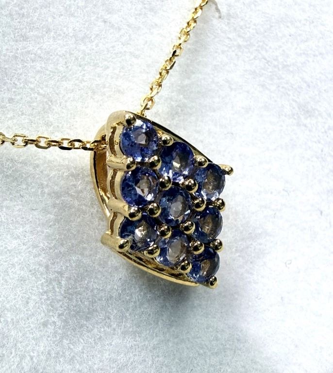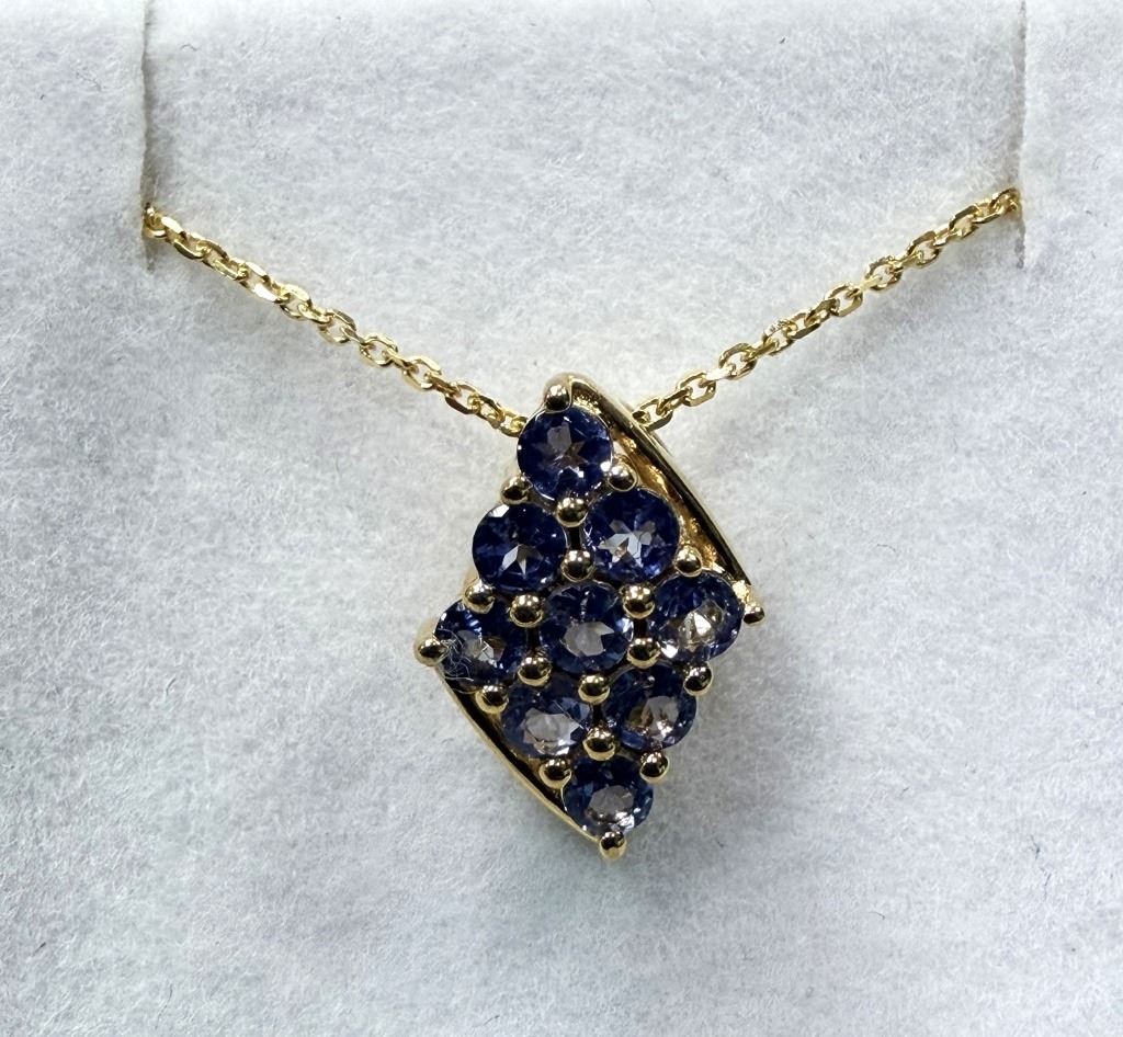 GOLD PLATED STERLING SILVER NATURAL TANZANITE (0.54CT) PENDANT WITH GOLD PLATED STERLING SILVER CHAIN, W/A $490.00. TANZANITE IS THE BIRTHSTONE FOR DECEMBER.