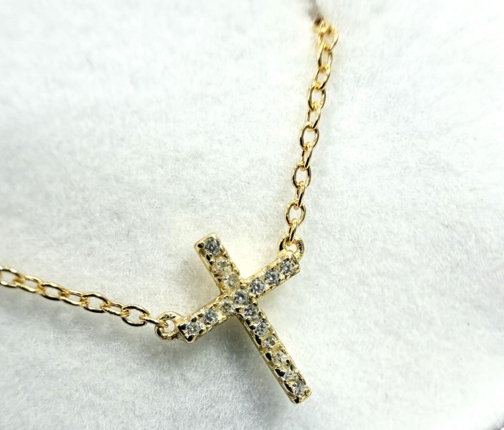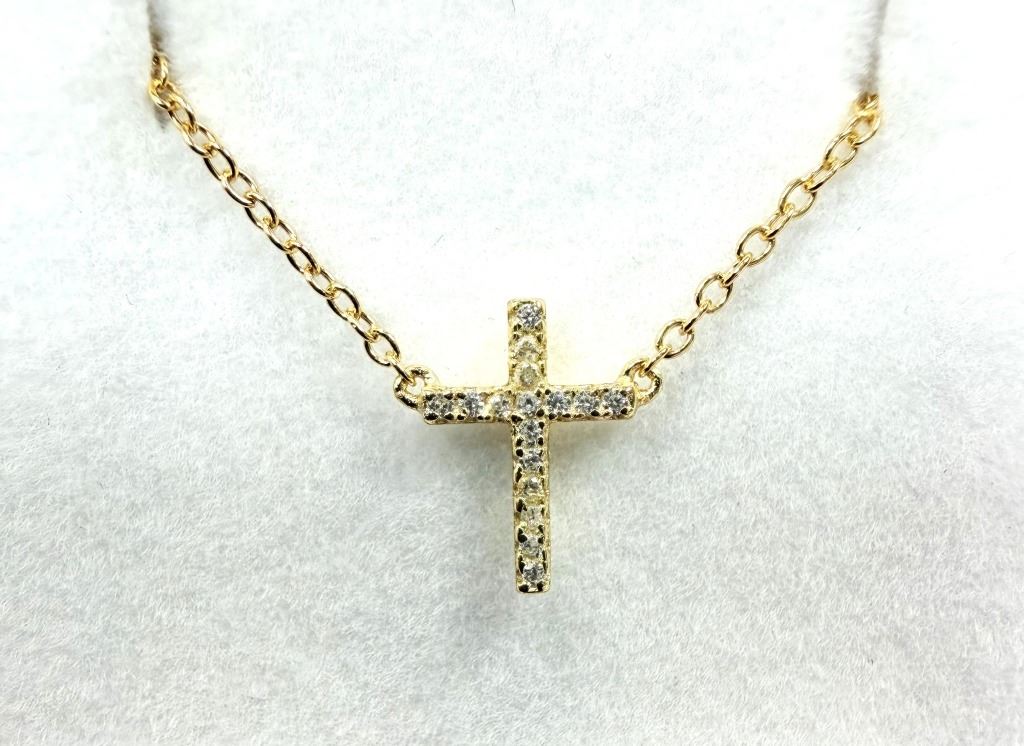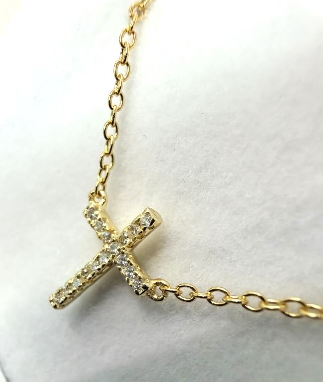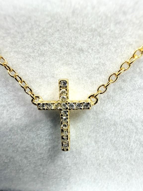 Lot 1090 GOLD PLATED STERLING SILVER CZ CROSS NECKLACE, RETAIL $250.00.