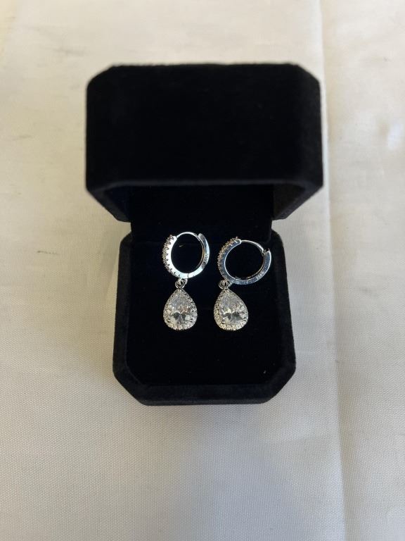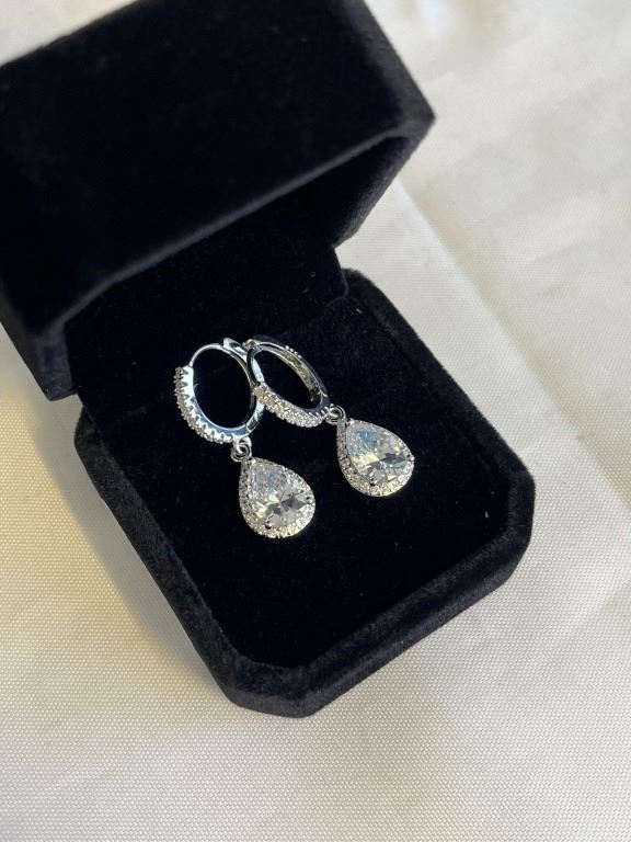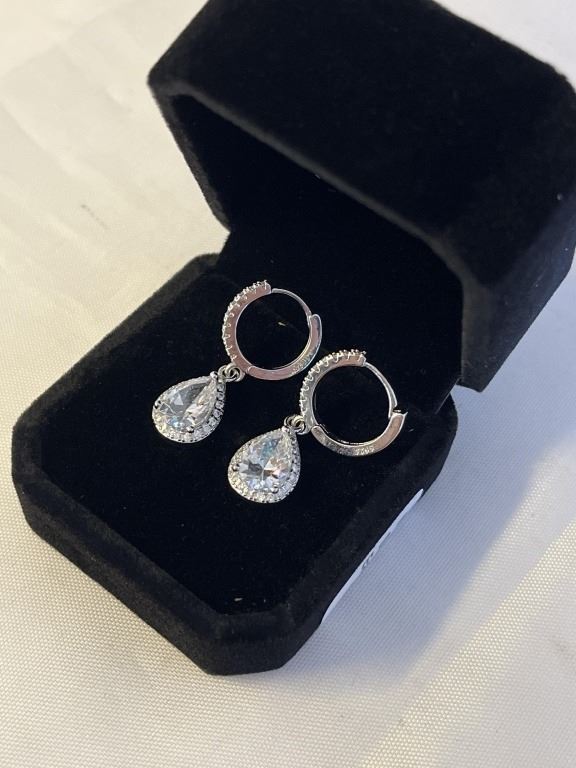 Lot 1098 NEW S925 2.0CT EACH PEAR CUT SIMULATED DIAMOND (CZ) DANGLE EARRINGS, MOUNTED IN 925 STERLING SILVER