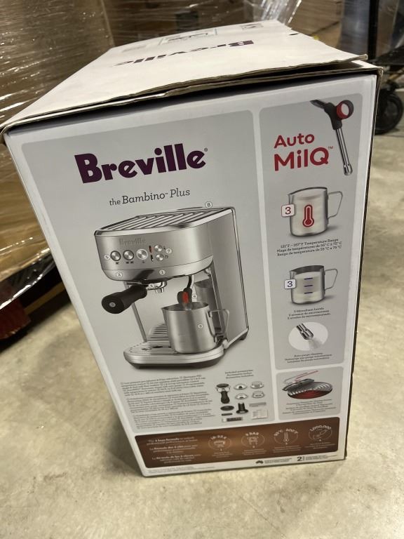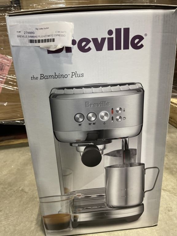 Lot 1136 BREVILLE BAMBINO PLUS AUTOMATIC ESPRESSO MACHINE - SEA SALT - TESTED WORKING, RETAIL $649