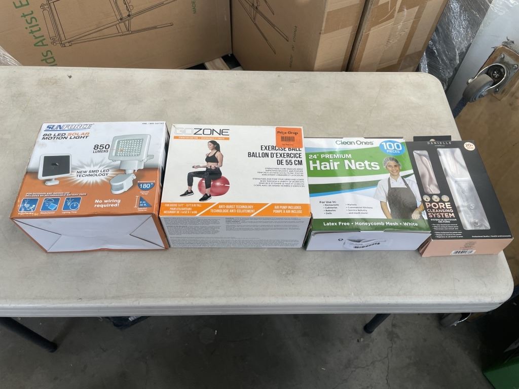 Lot 1170 EXCERCISE BALL, PORE CLEANING SYSTEM AND HAIR NETS AND 80 LED SOLAR MOTION LIGHT