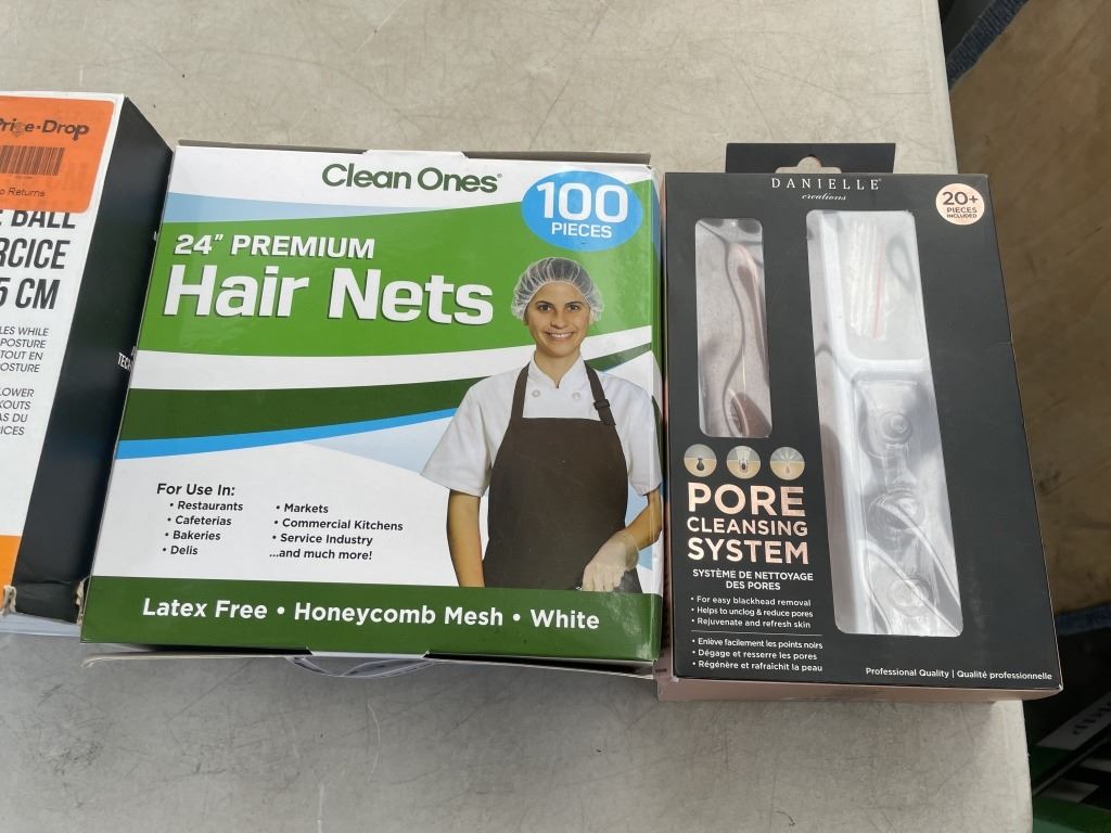 EXCERCISE BALL, PORE CLEANING SYSTEM AND HAIR NETS AND 80 LED SOLAR MOTION LIGHT