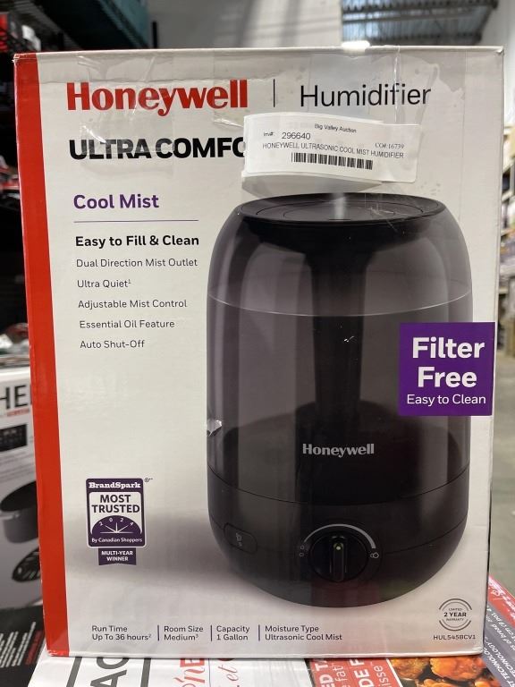 Lot 1246 HONEYWELL ULTRASONIC COOL MIST HUMIDIFIER - TESTED WORKING, RETAIL $109