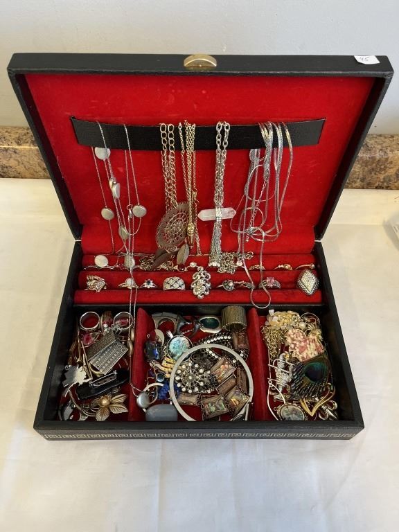 JEWELRY CASE W/ LOTS OF MISC CONTENTS