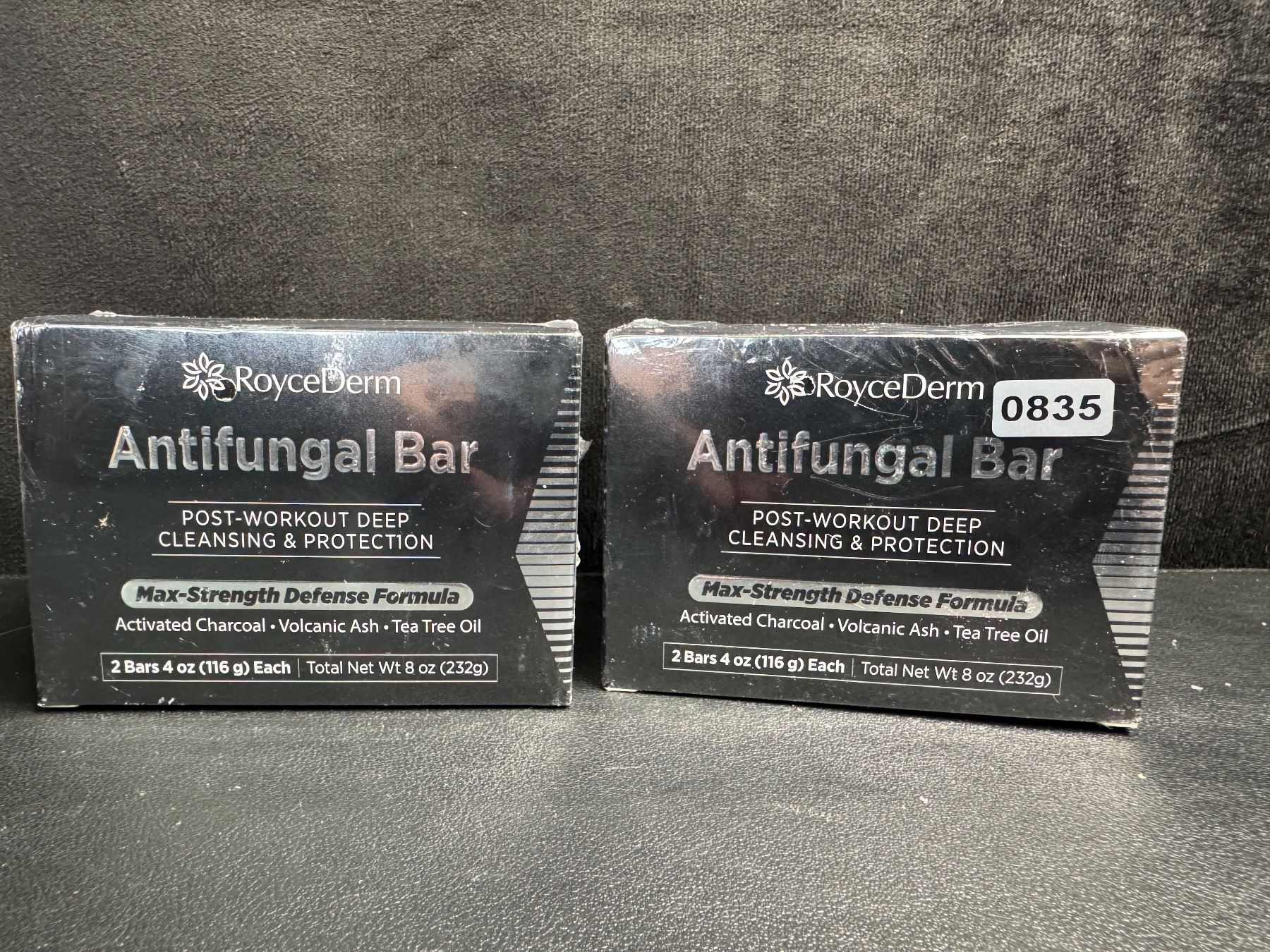 Lot 835 2 Boxes (4 Bars) RoyceDerm Antifungal Bars (116g) Max Strength Post-Workout/Deep Cleansing - New