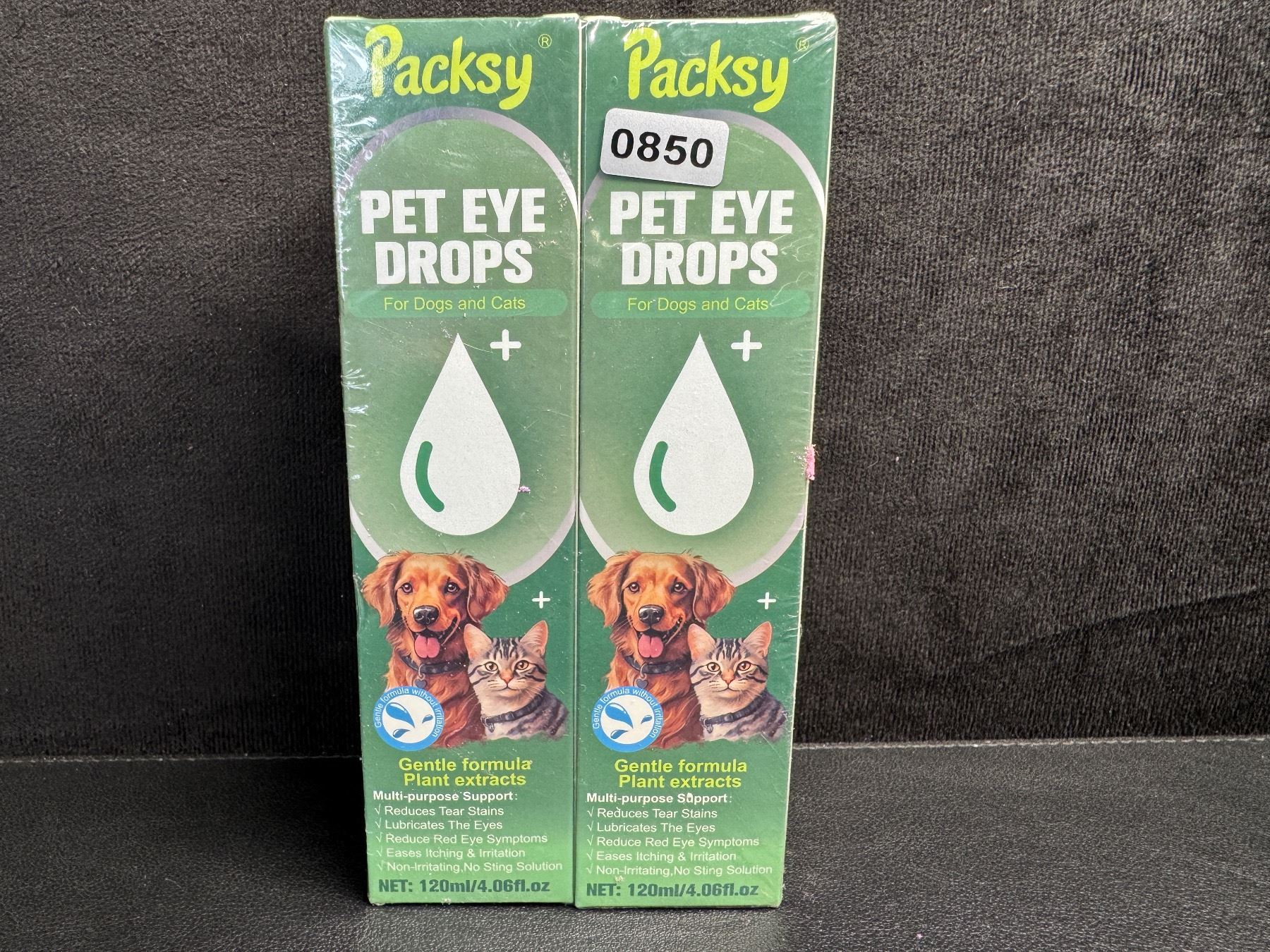Lot 850 2-Pack of Packsy Pet Eye Drops for Cats and Dogs - Reduces Tear Stains and Lubricates Eyes - New