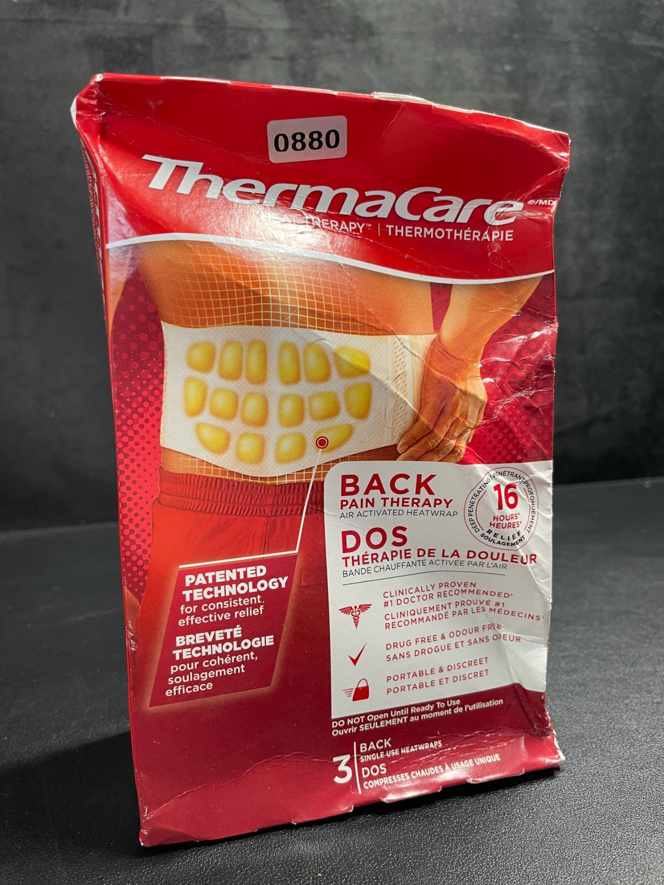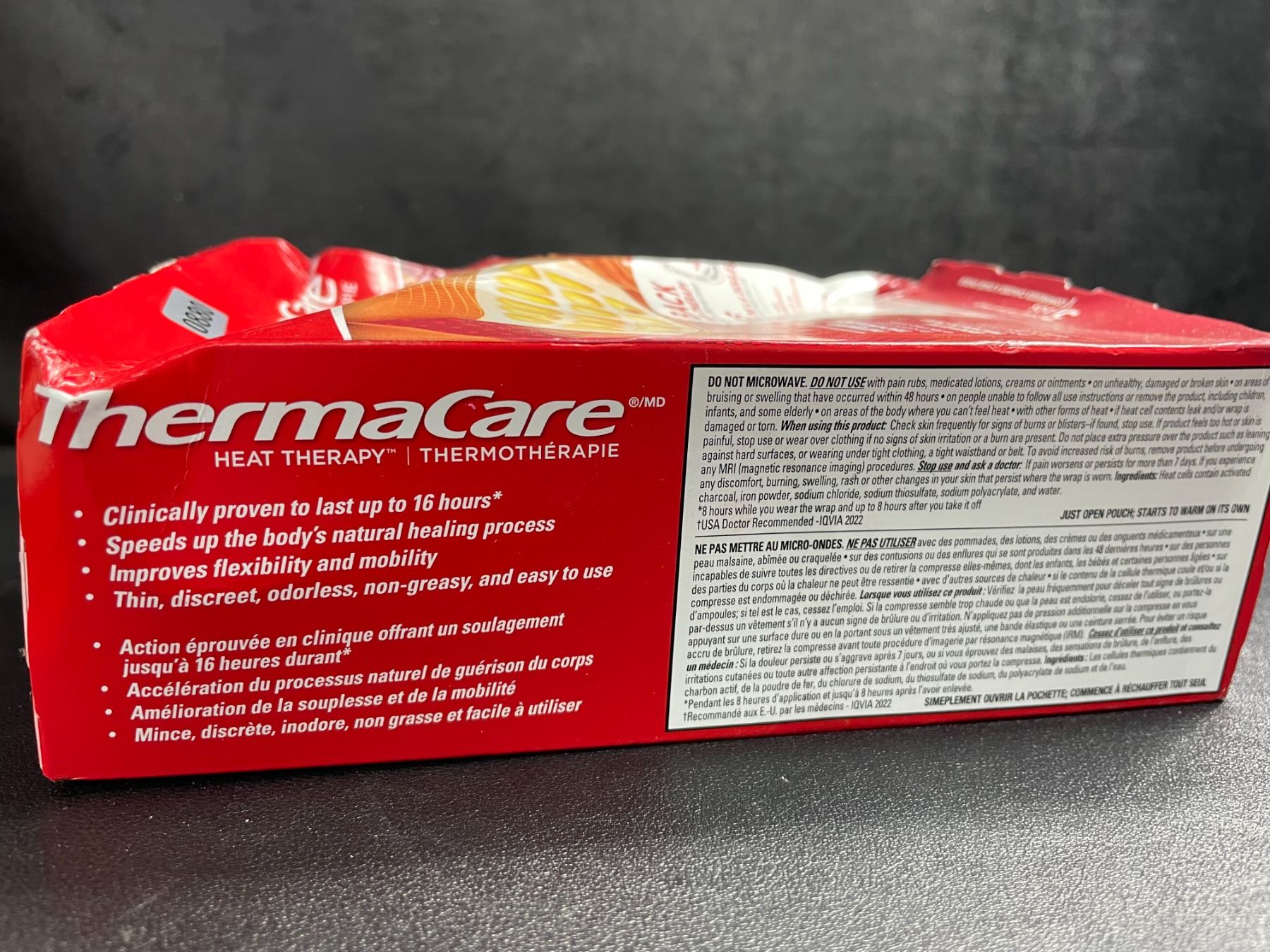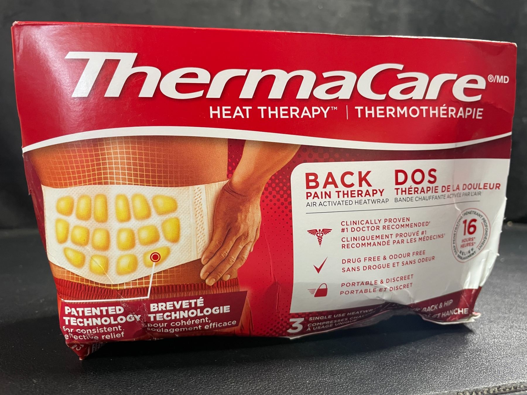 Lot 880 ThermaCare 3-Pack Box of Back Pain Therapy Air Activated Heatwraps - New Sealed (Dmg Box)