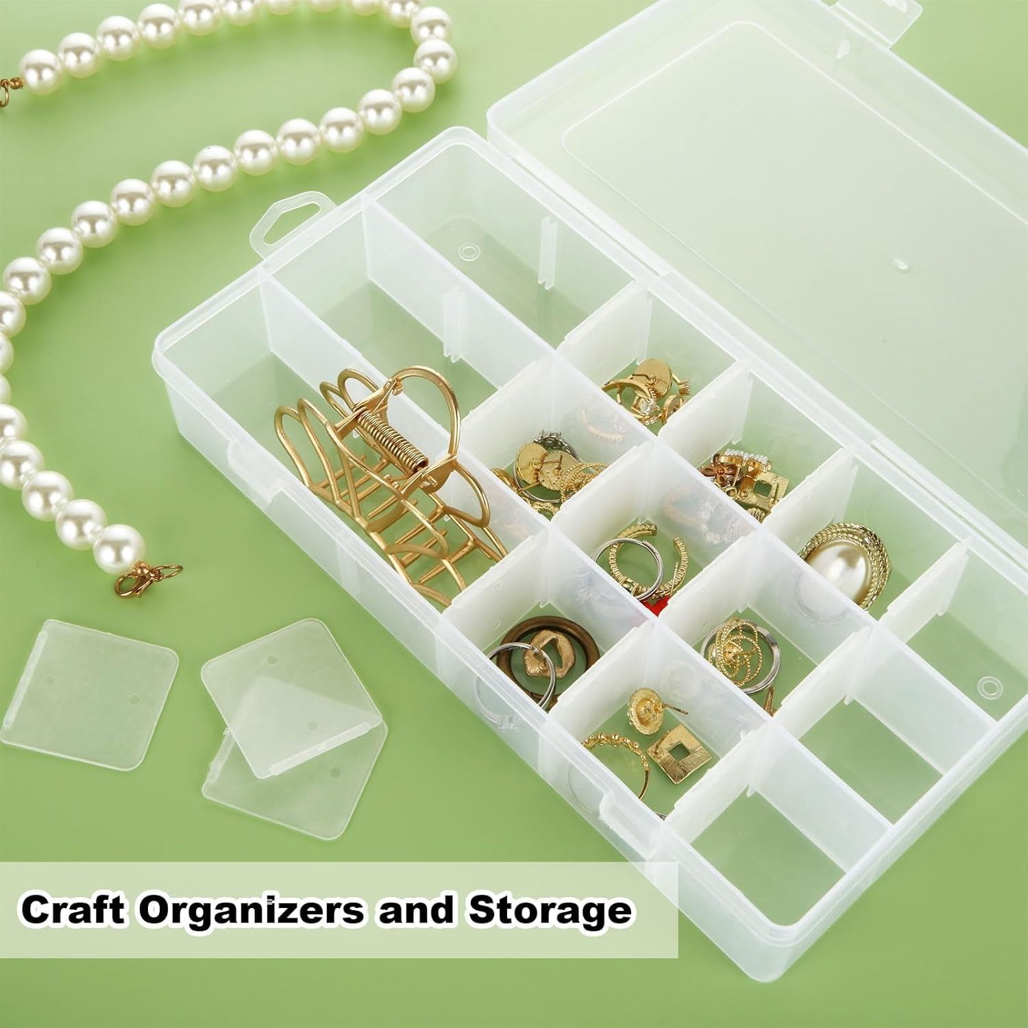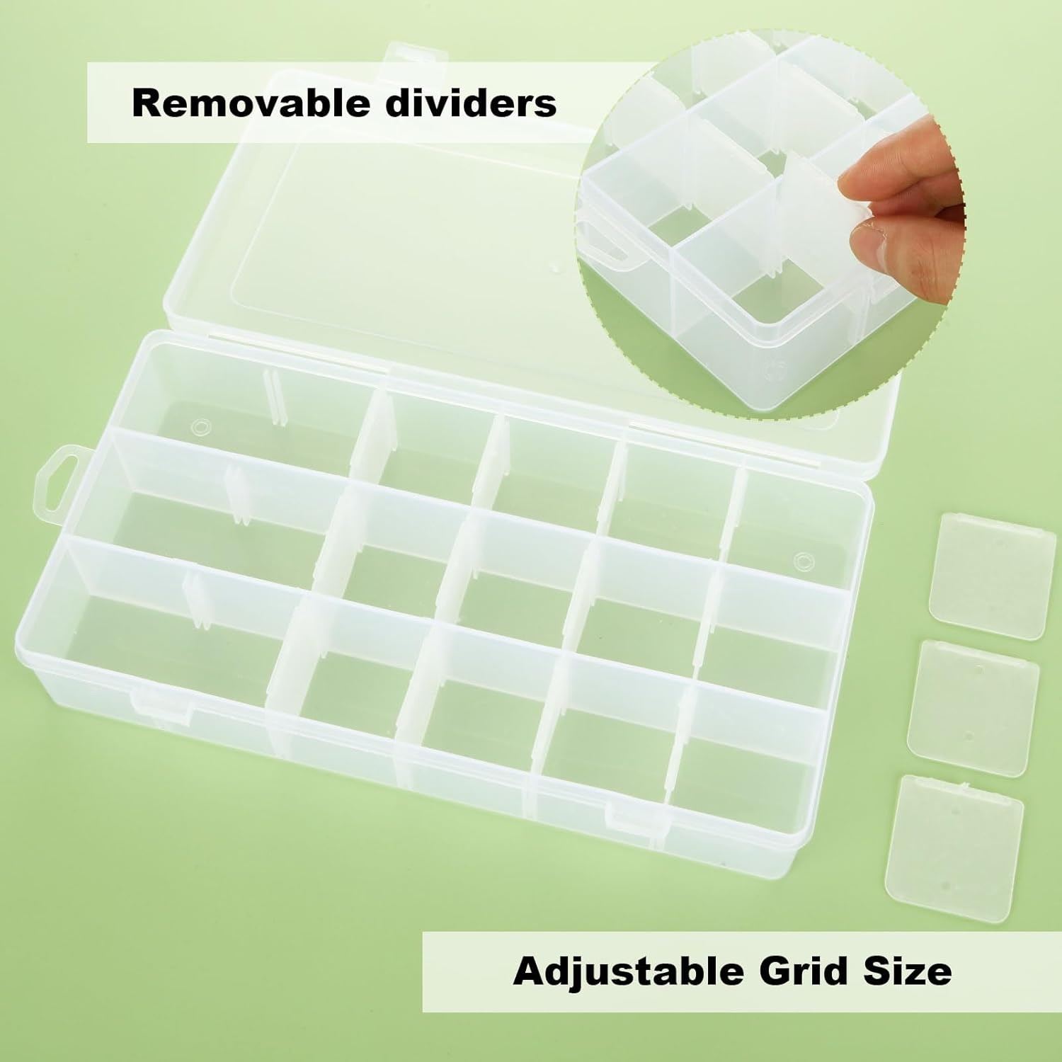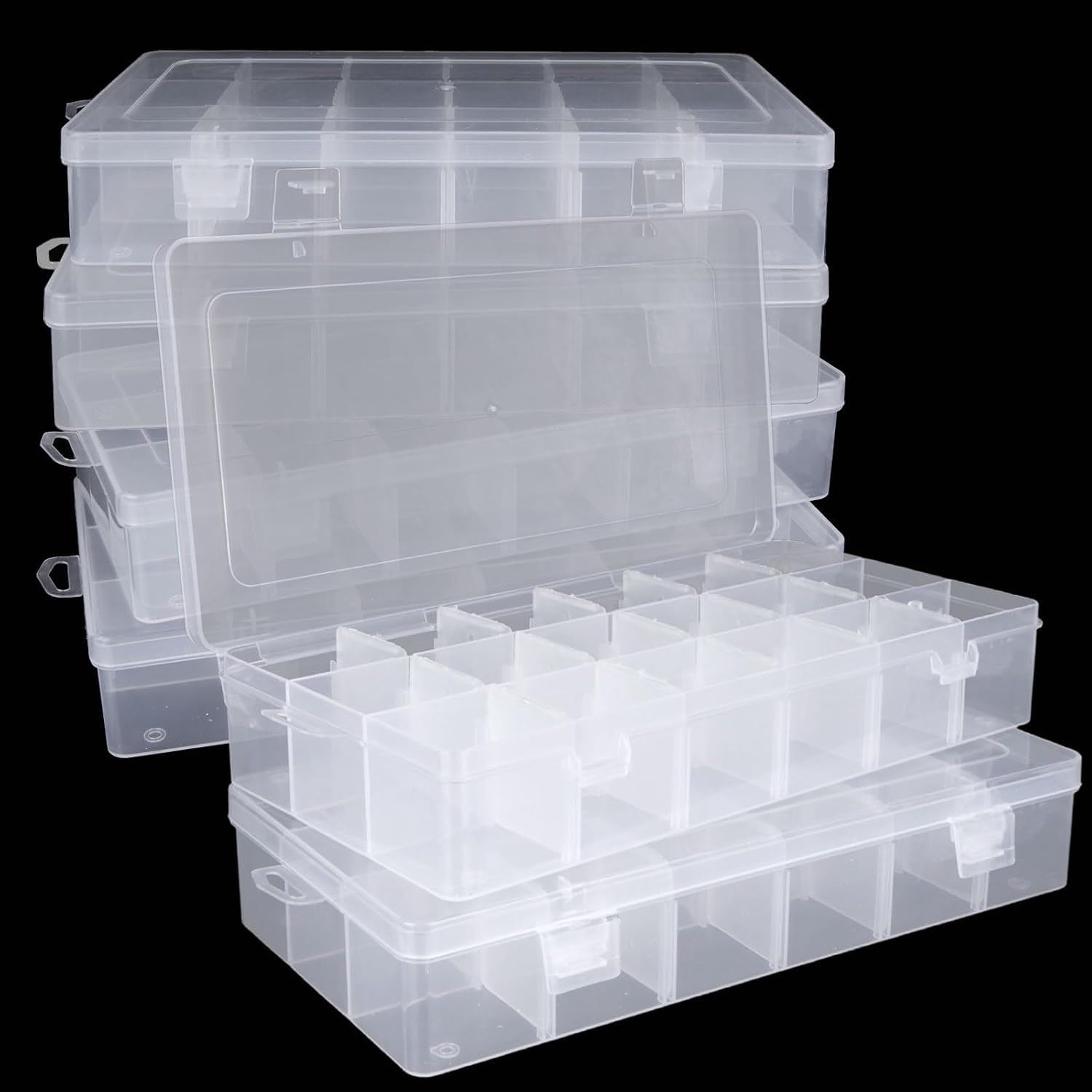 - 6 Pack 18 Grids Plastic Organizer Box with Dividers, Tackle Box Organizers and Craft Storage Clear Fishing Organizer Box for Art DIY Beads Organizer