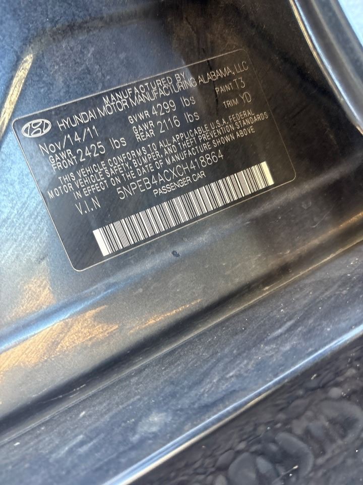 VIN: 5NPEB4ACXCH418864 | MILEAGE: 200000 | PAPERWORK: TT