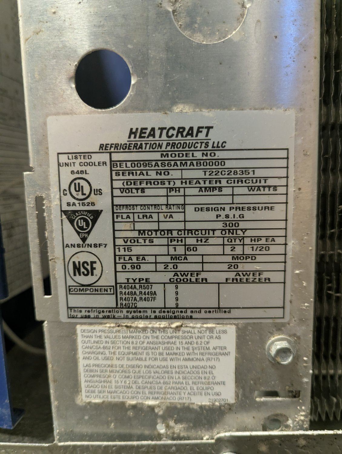 [Used,] Bohn Model : BEL0095AS6AMAB0000, Copeland RST64C1E-CAV-959