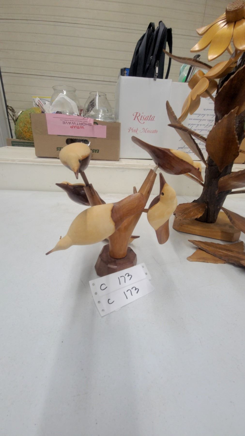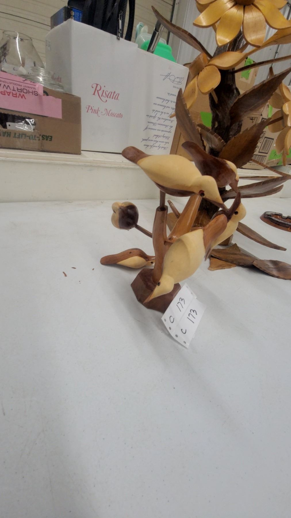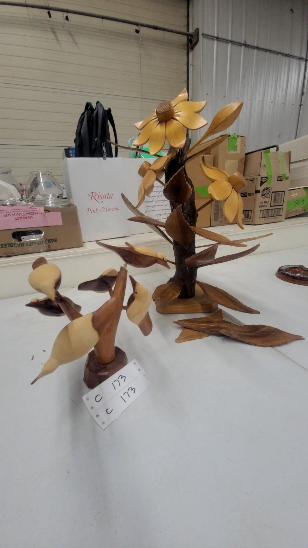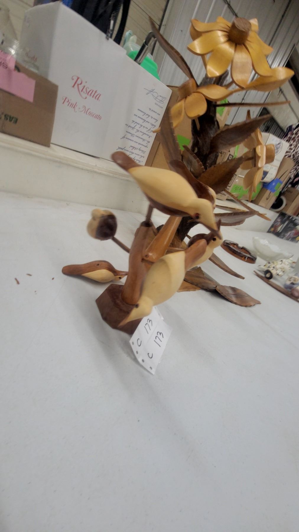 Lot 173 Carved Wooden Floral Sculpture with Sunflowers and Bird Figurine, Decorative Folk Art Set