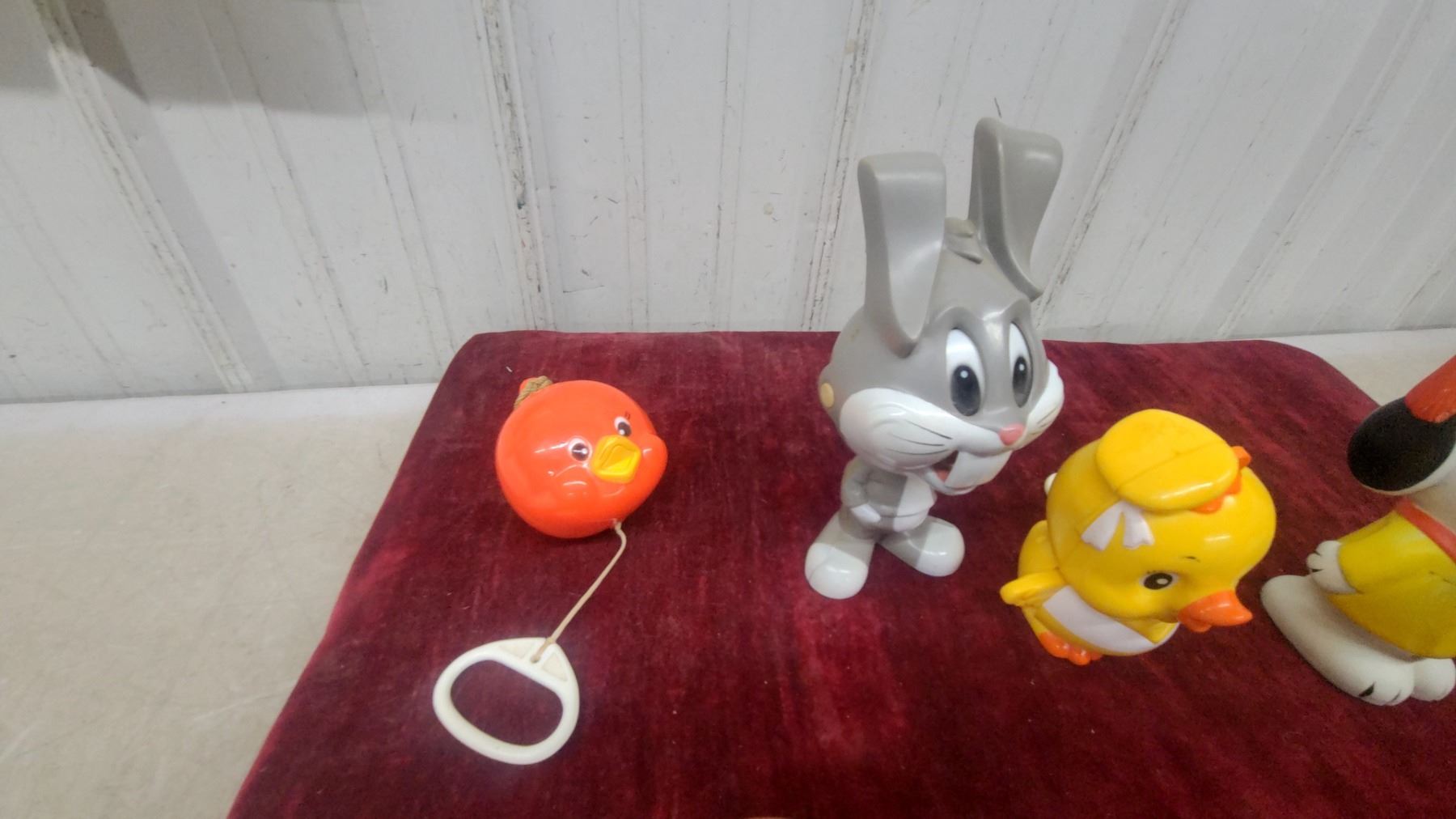 Lot 207 Lot of 7 Vintage Character Toys Incl Snoopy, Talking Bugs Bunny and Duck Figures Vintage