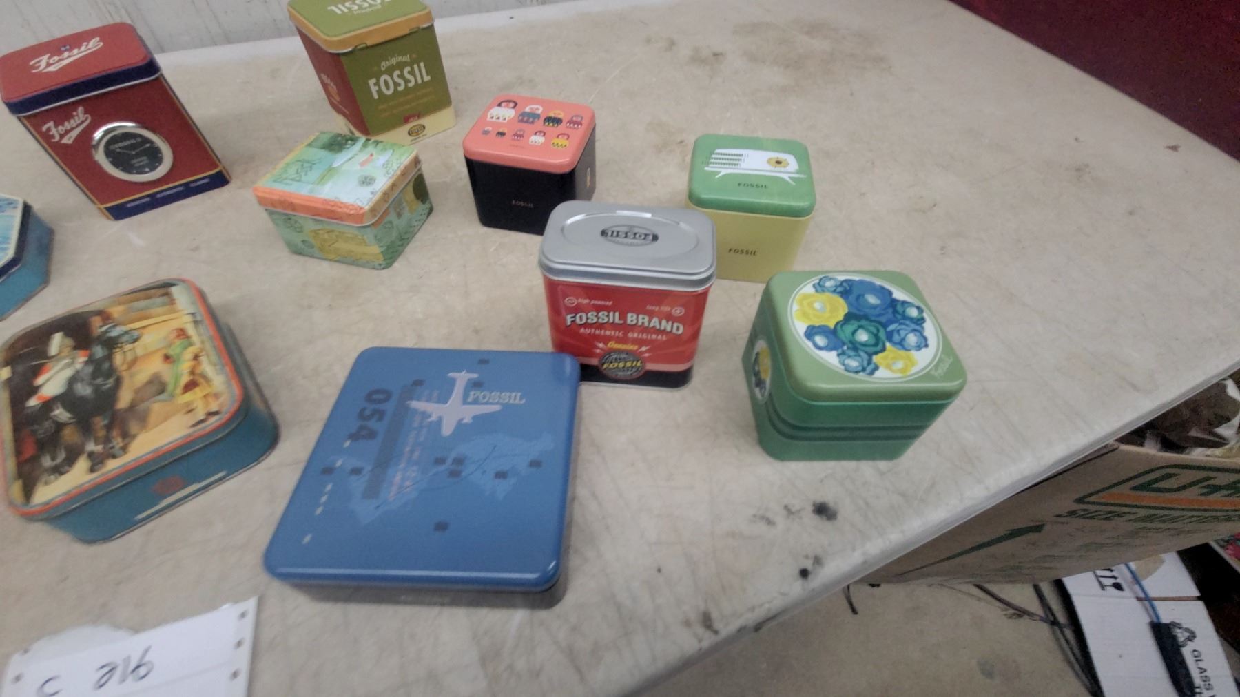 Lot 216 Collection of Fossil Brand Decorative Watch Tins, Various Others Designs and Sizes, Approximately
