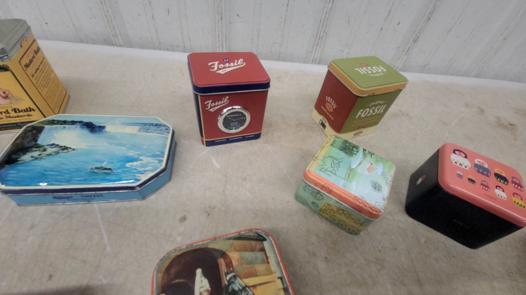 Collection of Fossil Brand Decorative Watch Tins, Various Others Designs and Sizes, Approximately