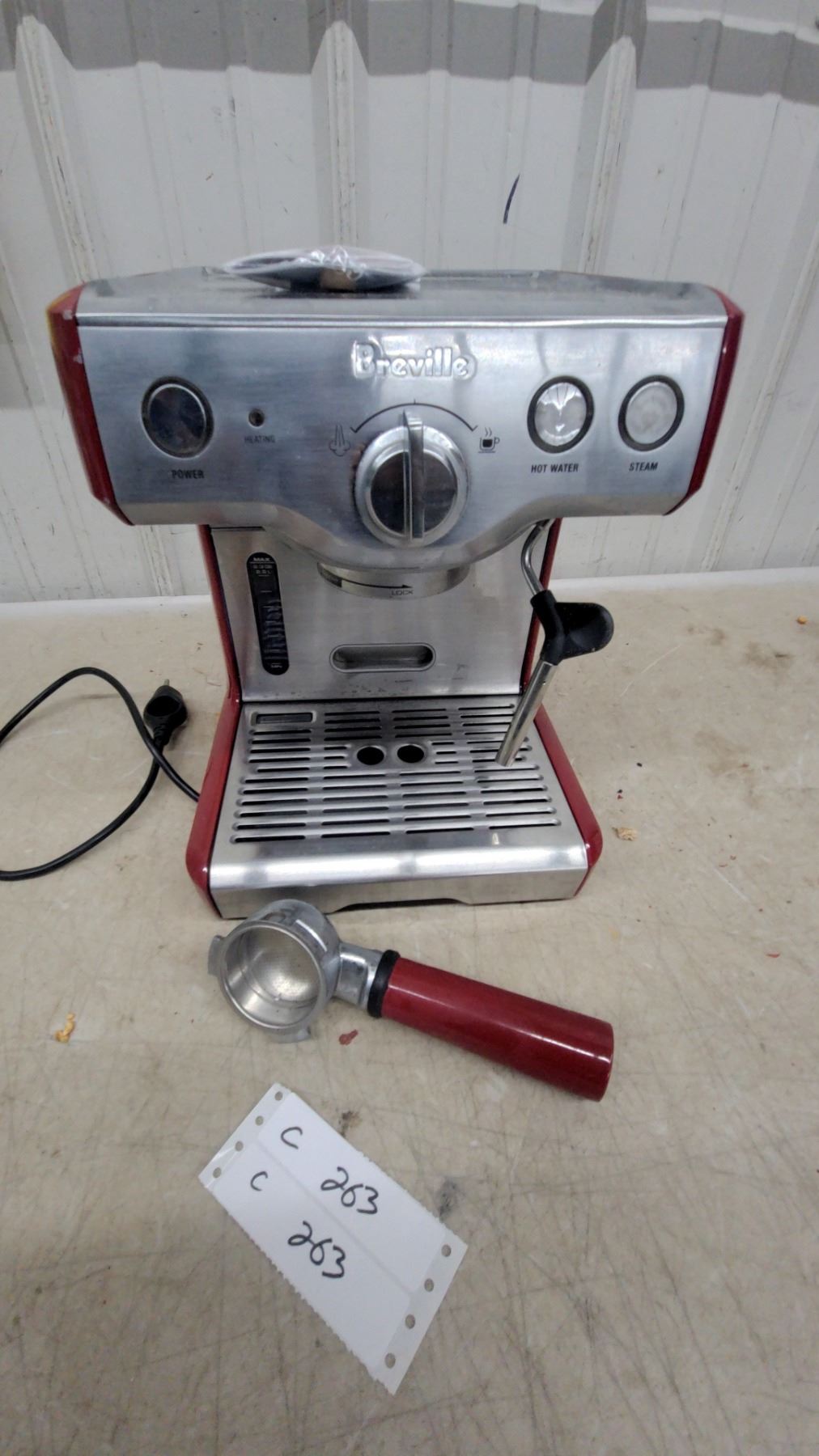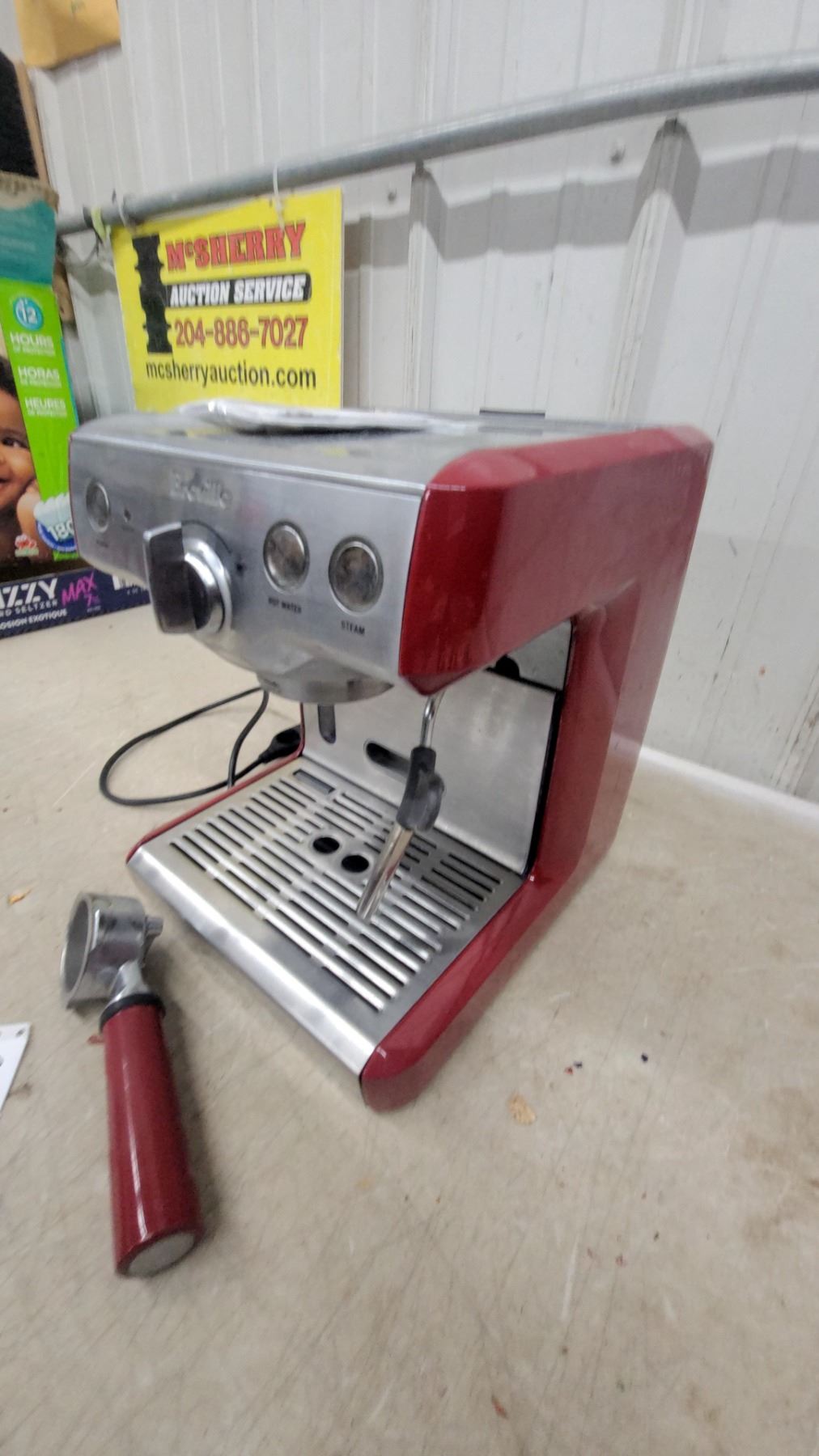 Lot 263 Breville Espresso Machine with Portafilter, Red/Stainless Steel, Hot Water & Steam Functions