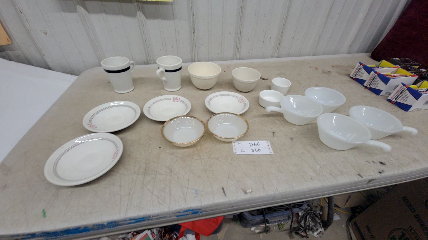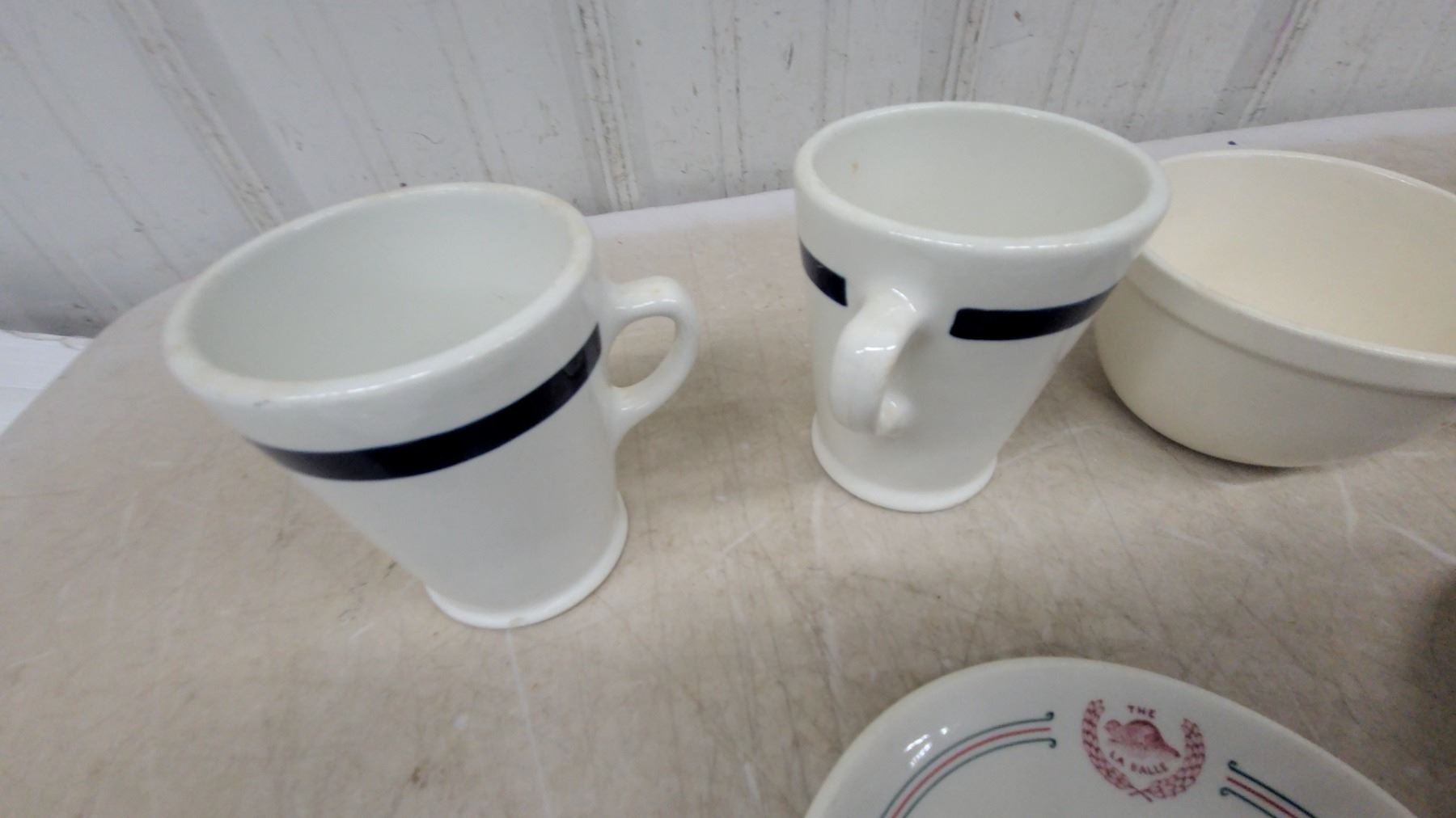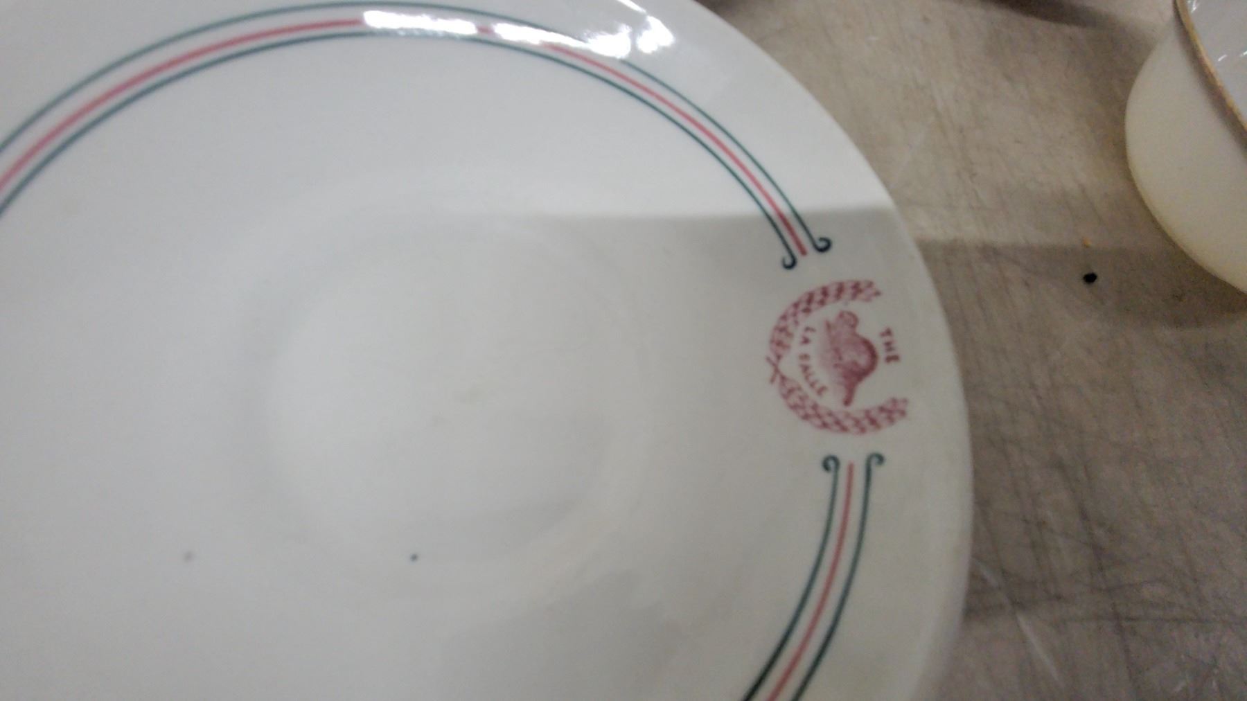 Lot 266 La Salle Hotel Restaurant Ware Lot: Plates, Saucers, Cups, Creamers; Duraline China Fire King