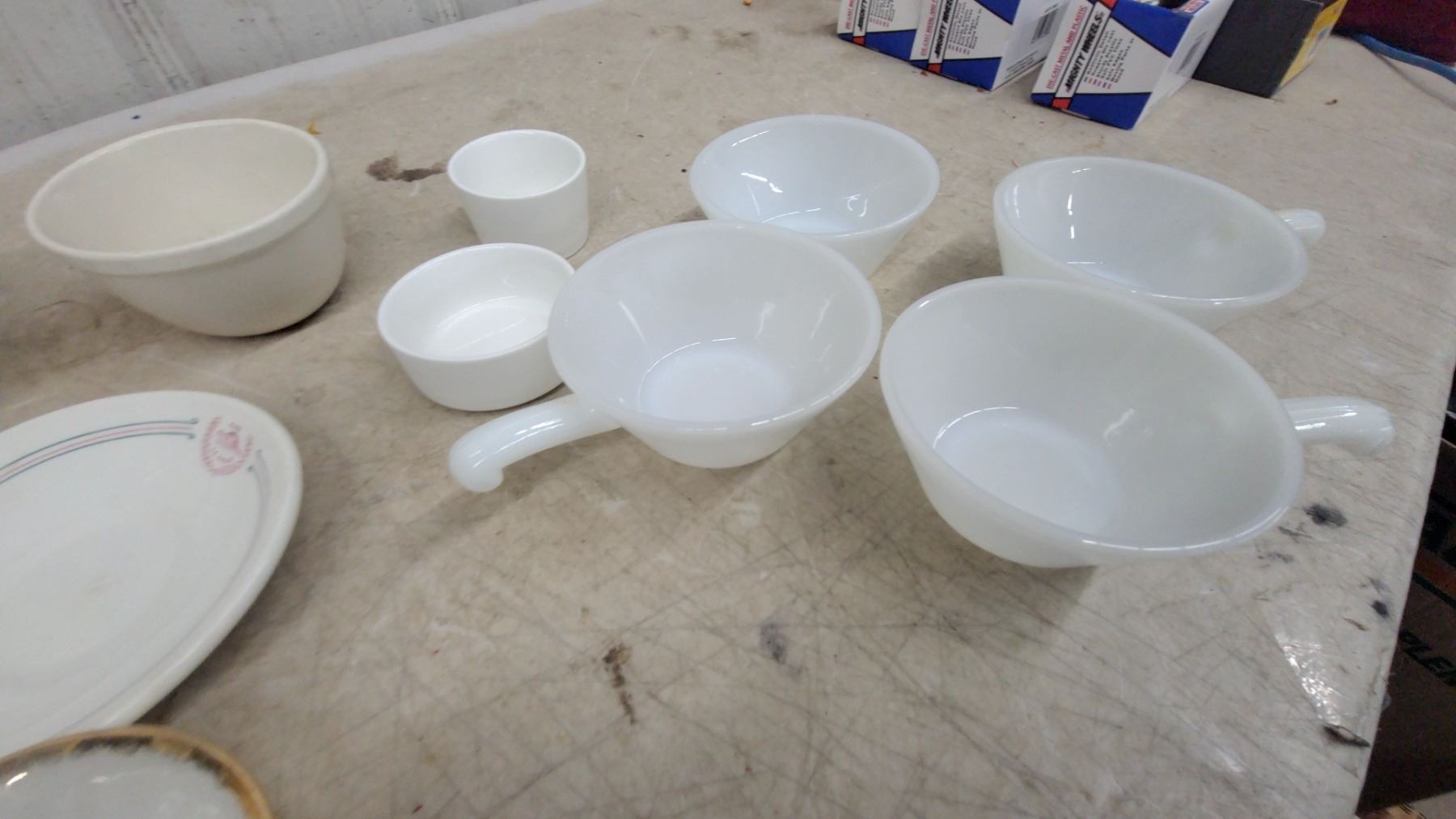 La Salle Hotel Restaurant Ware Lot: Plates, Saucers, Cups, Creamers; Duraline China Fire King