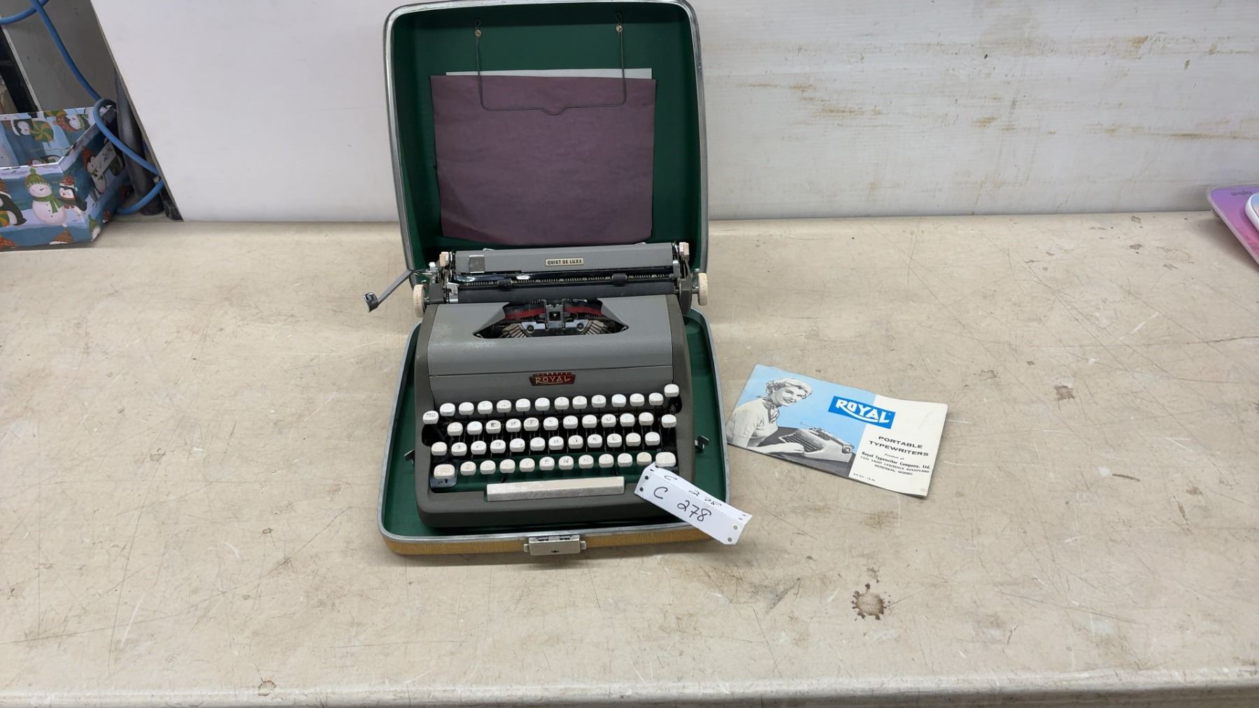 Lot 278 Royal Quiet De Luxe Portable Typewriter with Original Carrying Case and Manual