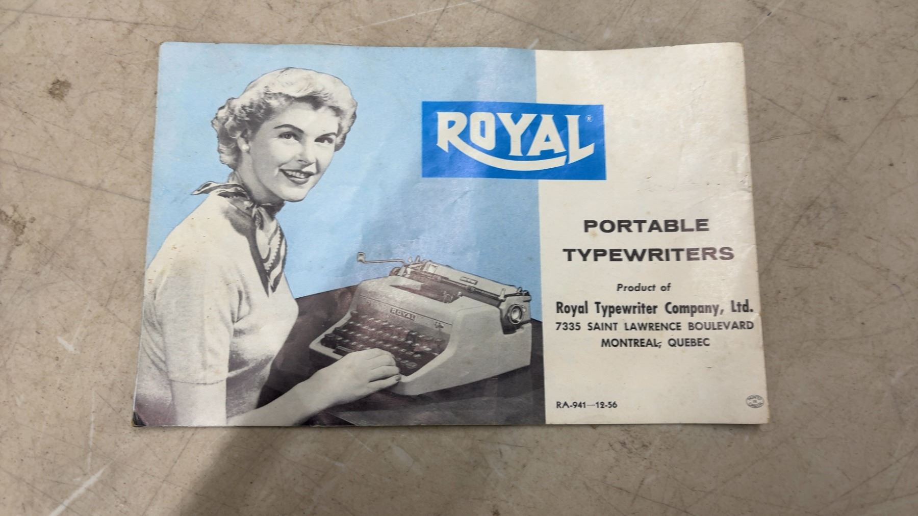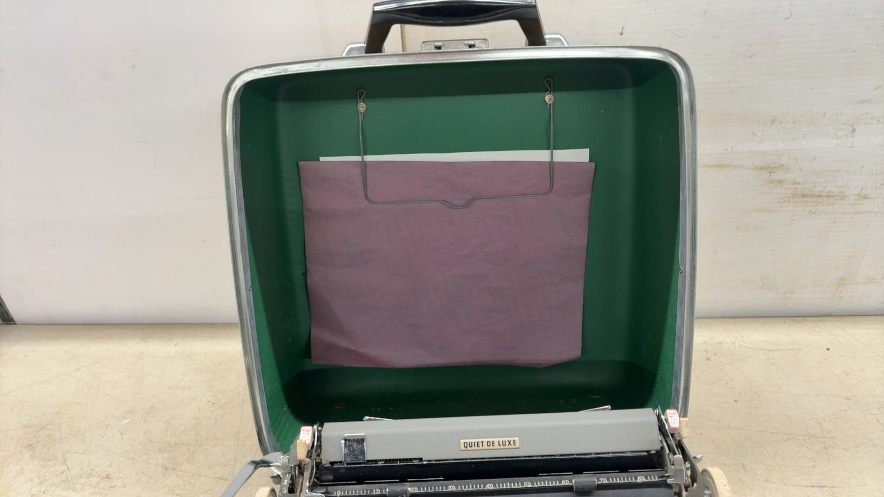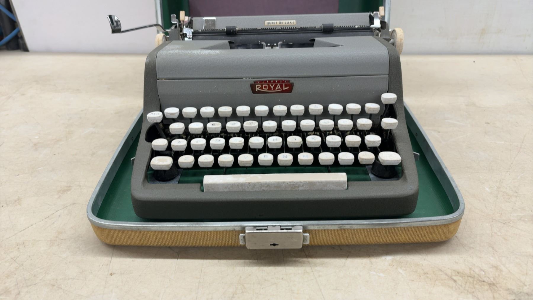 Royal Quiet De Luxe Portable Typewriter with Original Carrying Case and Manual
